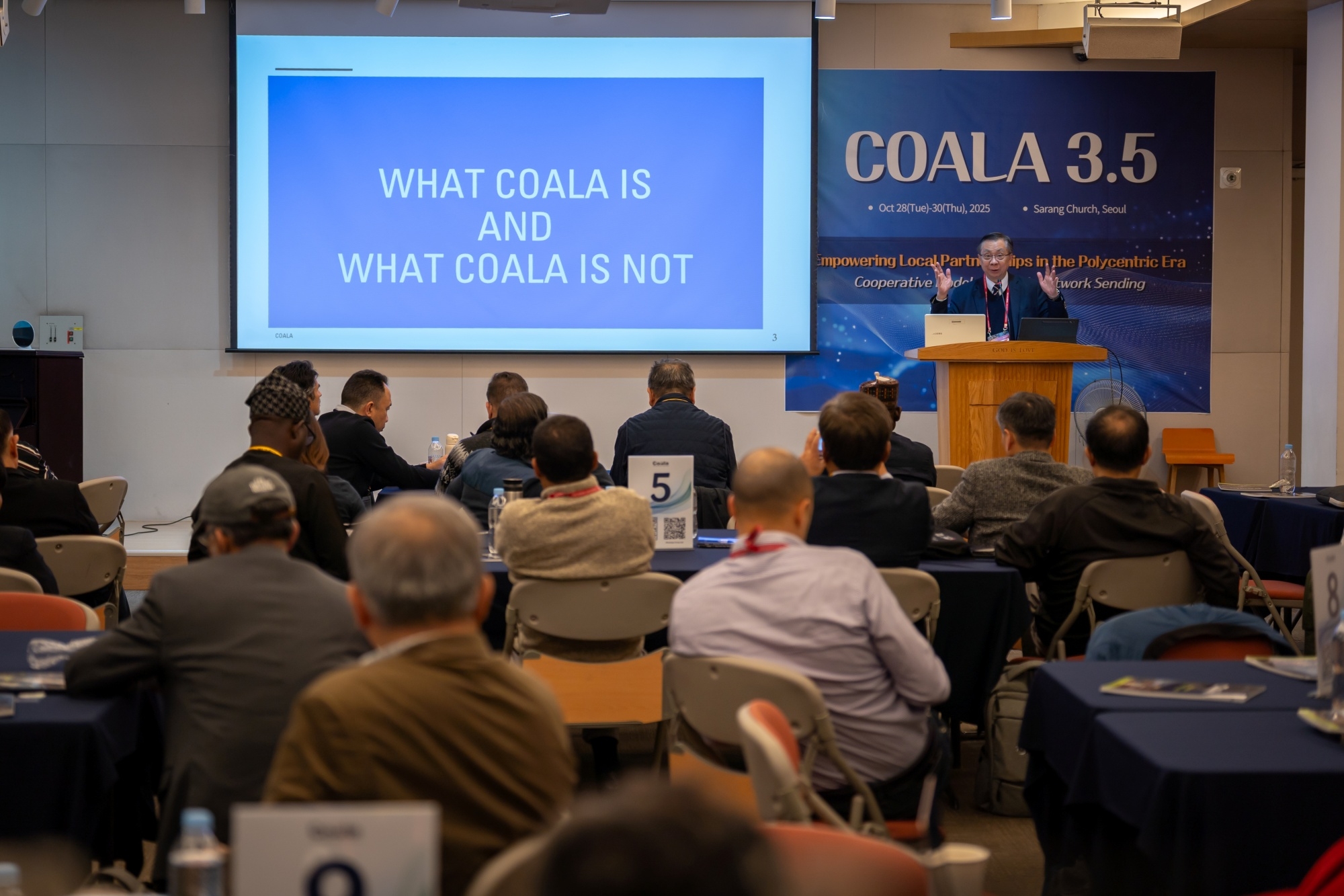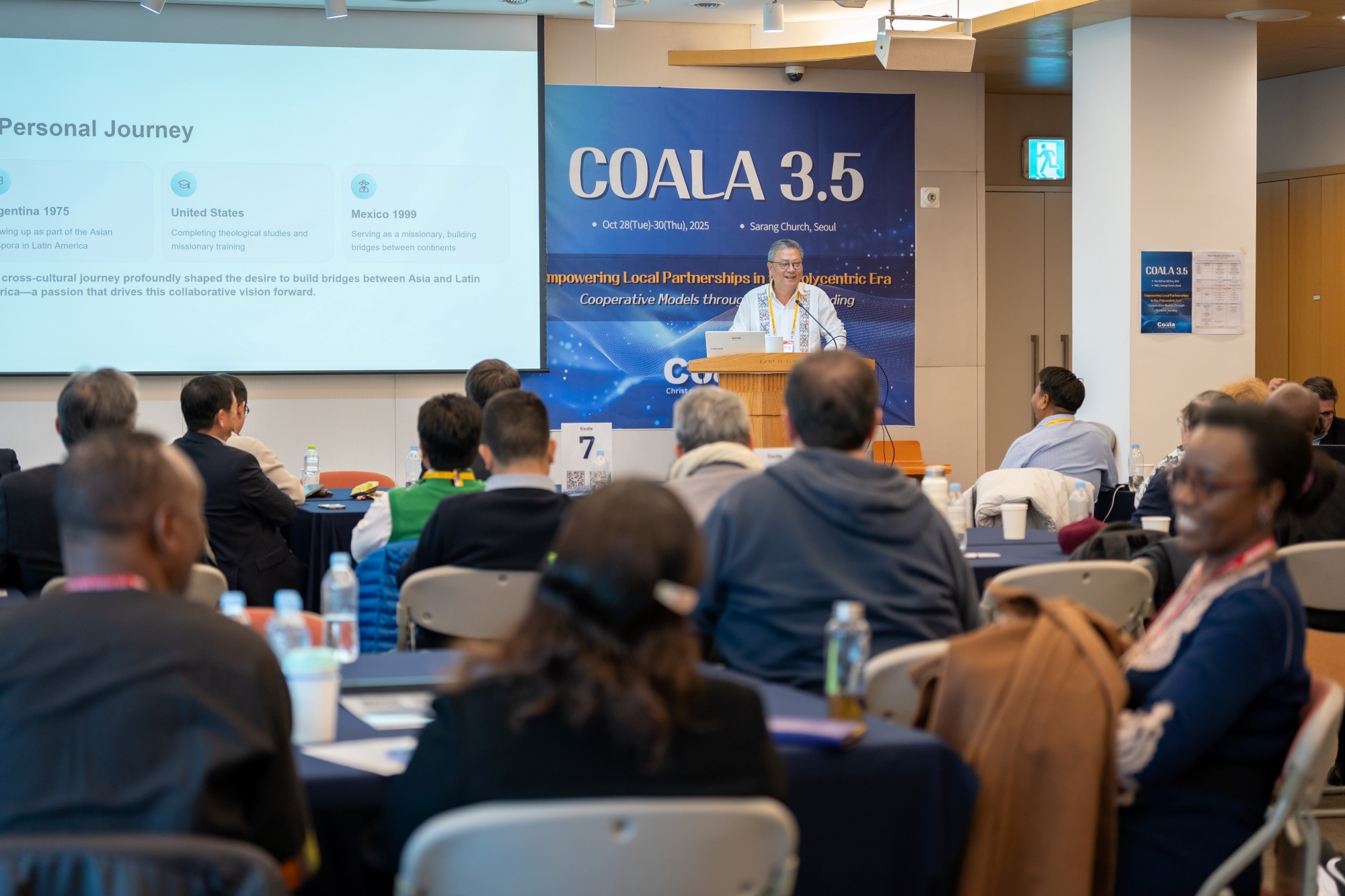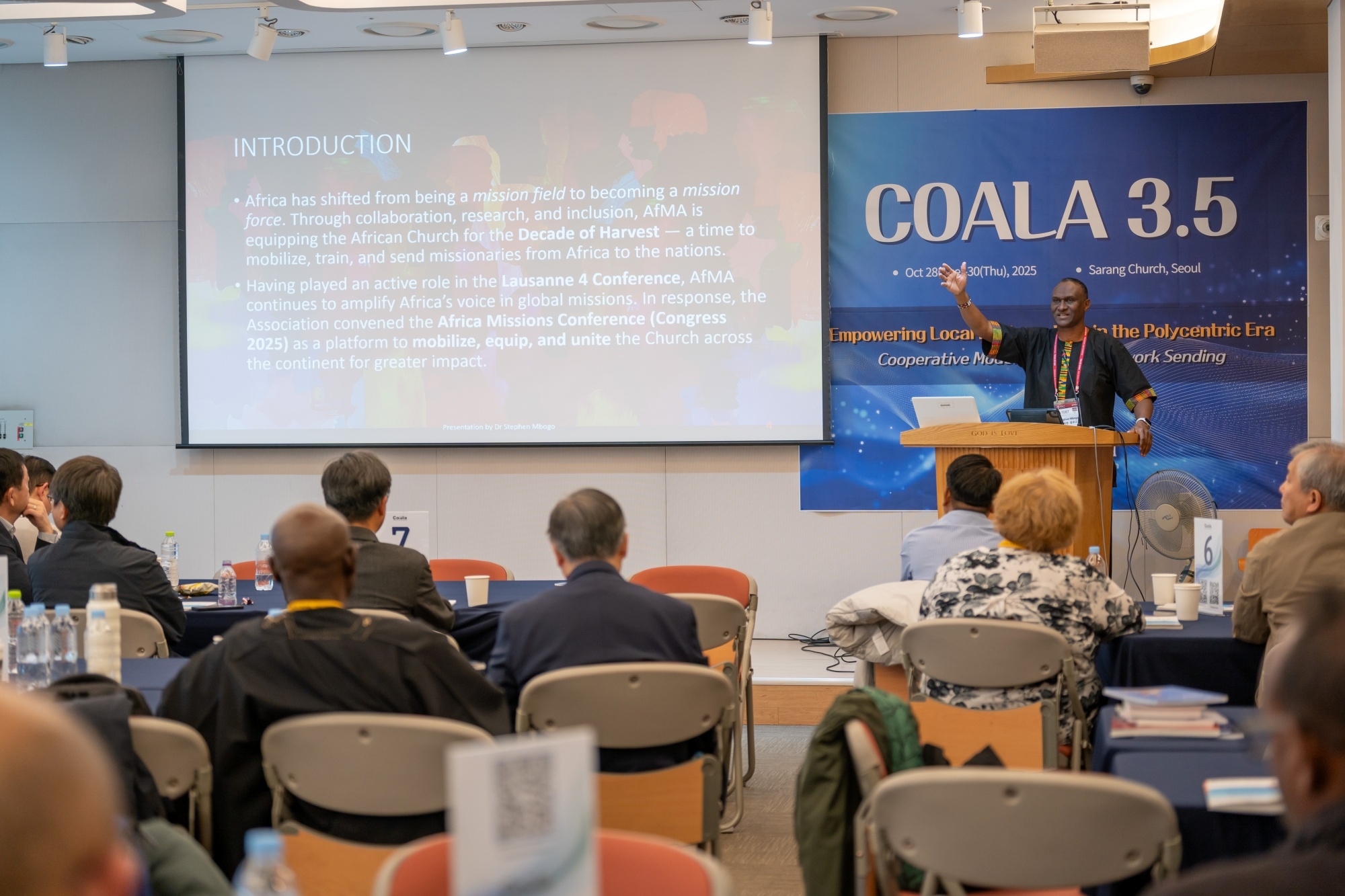 Coala 3.5 대회 2025년 10월 28~30일, 서울 사랑의교회에서 WEA 서울총회와 동시에 COALA 3.5 대회가 열렸다. 22개국 51명이 참여한 가운데 “다중심 시대의 지역 기반 선교협력 강화: 네트워크를 통한 협력 모델(Empowering Local Partnerships in the Polycentric Era)”이라는 주제로, 글로벌 사우스 교회들이 주체가 되어 선교적 협력을 강화하는 방향을 대회의 중심에 두었다. 이에 따라 ‘선교사가 현지교회의 초청을 기반으로 파송되고, 현지 지도력을 인정하고 강화하며, 현지교회가 실제로 필요로 하는 부분을 채워주는 선교’ 등이 주요 의제로 다뤄졌다. 이번 COALA 3.5는 한국교회가 글로벌 사우스와 함께 새로운 선교협력 모델을 모색하는 중요한 자리였으며, 선교 패러다임의 전환을 실제로 경험하는 의미 있는 모임이 되었다. 이번 대회에서는 글로벌 사우스 중심의 실제적 협력 모델이 구체화되는 의미 있는 사건들이 이어졌다. 특히 이집트 카이로의 카사라 두바라 교회와 COMIBAM(라틴 아메리카 선교협의회) 간의 공식적인 선교협력 협정서(MOU)가 체결되었다. 이는 지난 파나마 대회에서 IMA(인도 선교협의회)와 COMIBAM이 맺은 협력 이후 두 번째로 이루어진 남반구 간 협정으로, 앞으로 South-to-South 협력이 더욱 빠르게 확산될 중요한 신호가 되었다. 이번 대회에는 WEA 서울총회를 위해 한국을 방문한 인사 중 독일 선교협의회 대표 볼프강(Wolfgang) 목사를 비롯한 약 20명의 글로벌 노스(북반구) 지도자들이 COALA 모임을 찾아와 협력 가능성을 타진했다. 이들은 다중심(polycentric) 시대의 선교가 더 이상 한쪽 중심에서 움직이지 않으며, COALA 운동이 글로벌 선교의 흐름을 실제로 바꾸어 가는 중요한 플랫폼이 되고 있다고 평가하며, 향후 협력과 동반 참여를 희망했다. 이번 COALA 3.5 대회는 이와 같은 협정 체결과 방문·대화의 장을 통해, 글로벌 사우스 교회들의 연대는 물론 글로벌 노스와의 새로운 차원의 협력까지 열어 가는 전환점이 되는 자리였다.