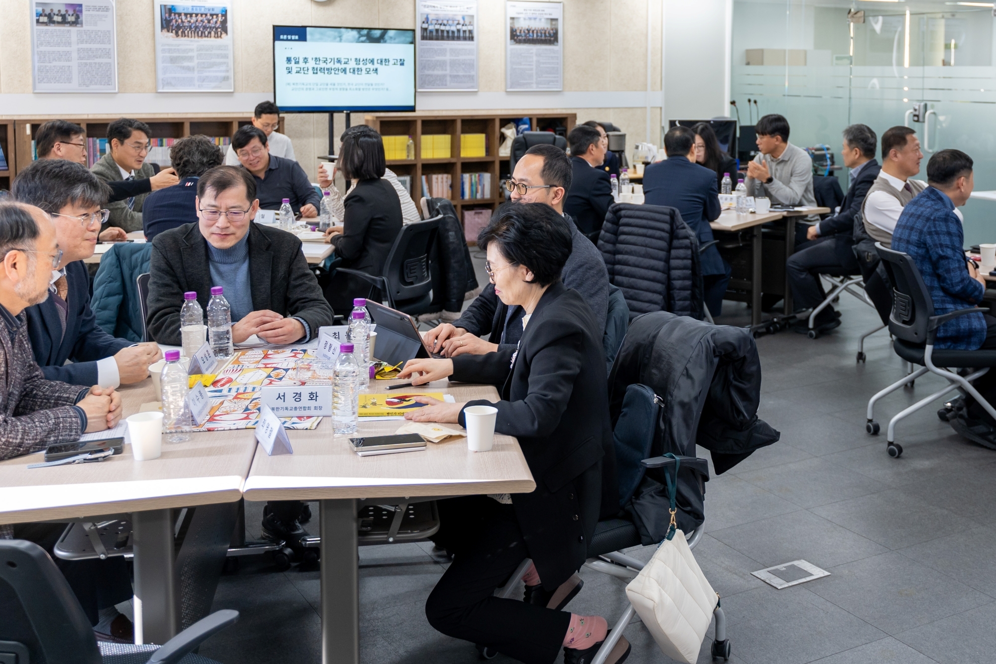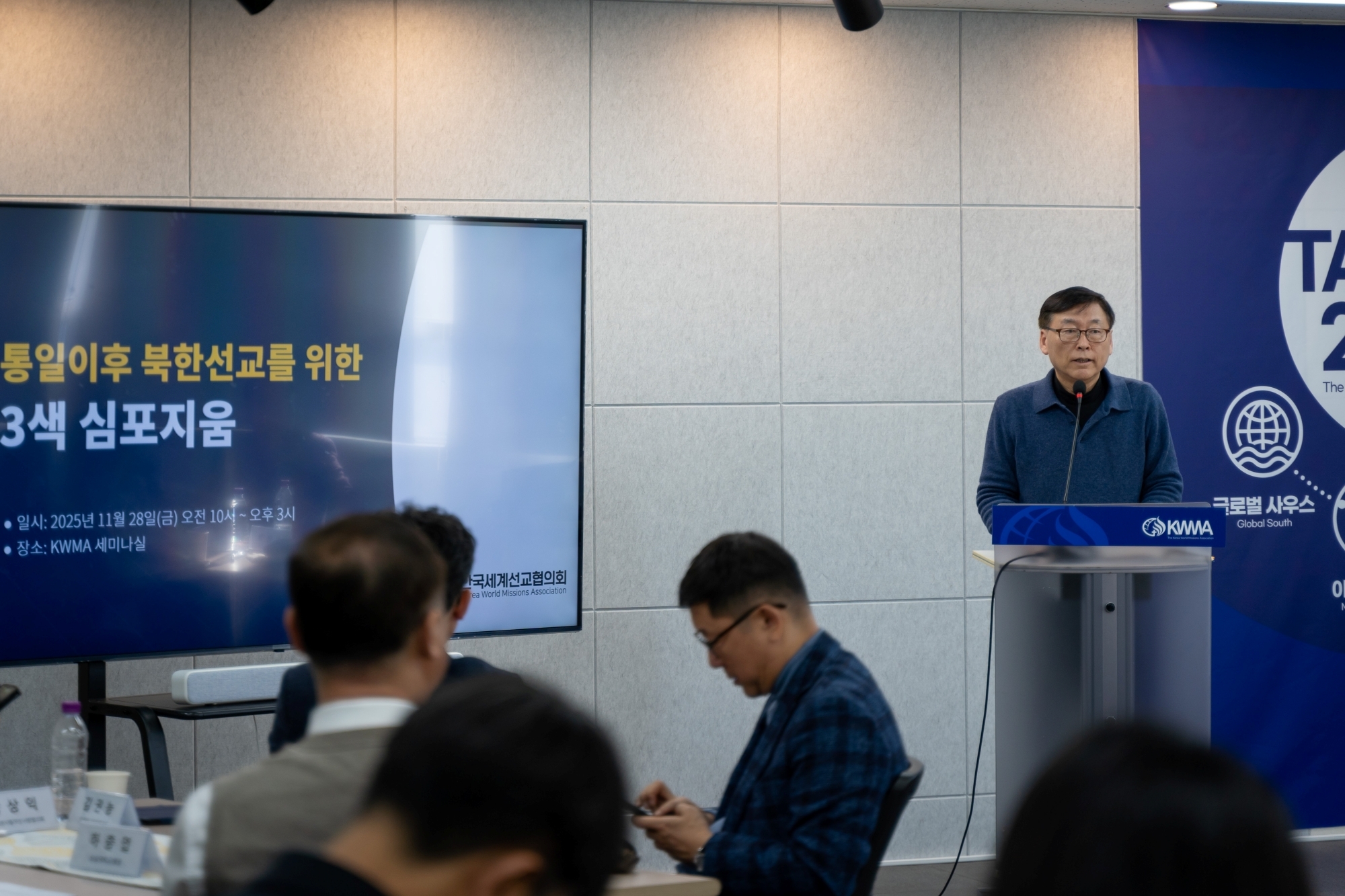 한국세계선교협의회(KWMA)는 2025년 11월 28일 KWMA 세미나실에서, 한국, 북기총, 중국 동포 교회 지도자 총 23명의 한자리에 모여 통일 이후 북한 선교를 논의하는 3색 심포지엄을 개최했다. 이번 심포지엄은 통일 및 급변하는 상황에 대비한 북한 선교 전략을 마련하기 위해, 서로 다른 역사, 경험, 신학적 배경을 가진 세 그룹의 지도자들이 한자리에 모였다는 점에서 의의가 크다. 참석자들은 세 그룹의 시각 차이를 솔직하게 공유함으로써, ‘서로 다른 관점이 오히려 서로에게 중요한 통찰을 제공했다’고 평가했다. 한국측은 통일 직후 사역의 구조 설계와 교단 간 협력 구도를 중점적으로 논의했고, 북기총측은 북한 내부 경험을 기반으로 한 현실적 접근을 강조했으며, 중국 동포 교회는 중국, 북한 접경지 사역 경험을 바탕으로 현장적 조언을 더했다. 이러한 삼색의 조합은 ‘통일선교는 어느 한 그룹의 프레임으로는 결코 충분할 수 없다’는 공감대를 형성하며, 새로운 협력 구조의 필요성을 부각시켰다.