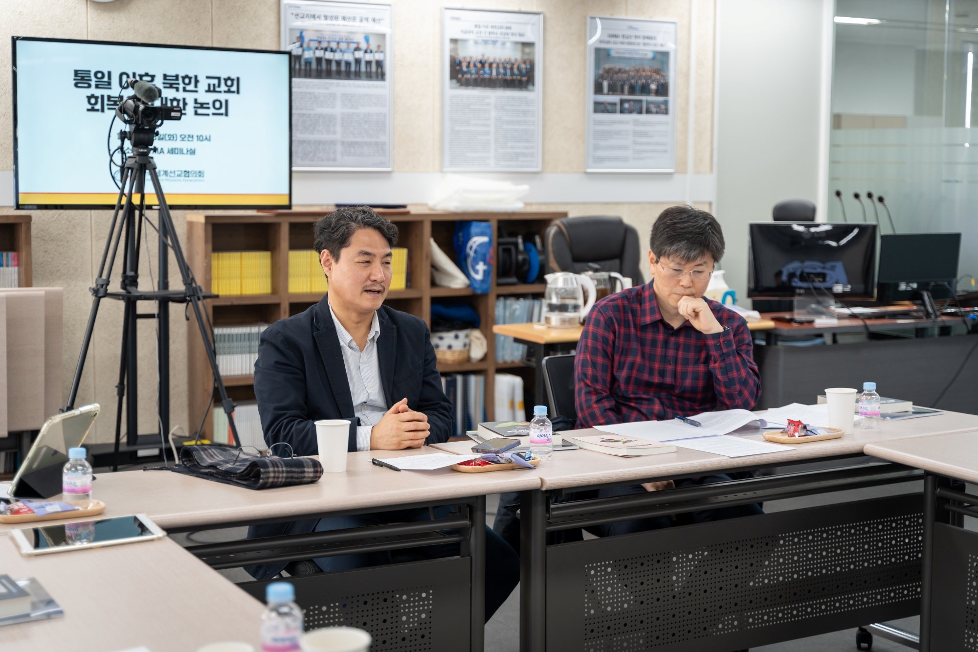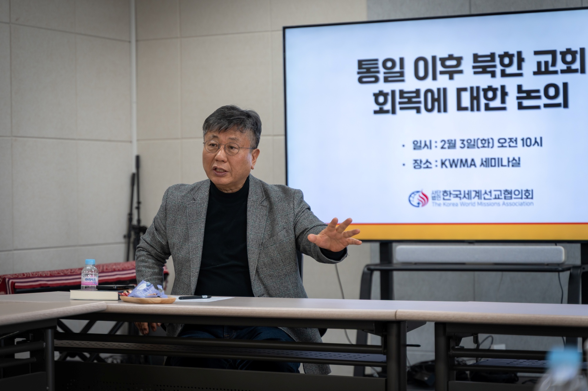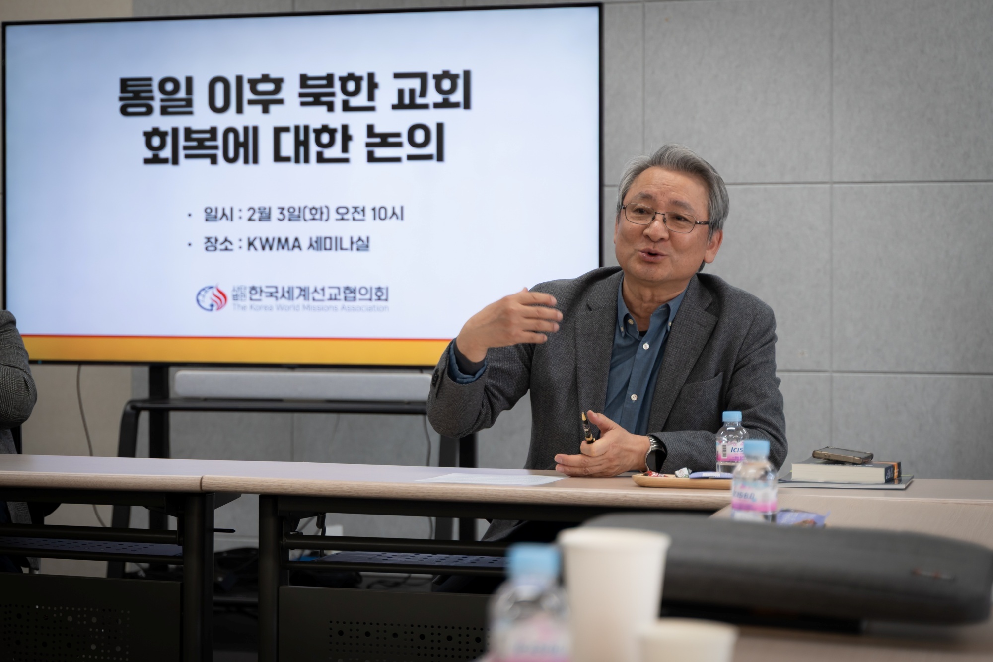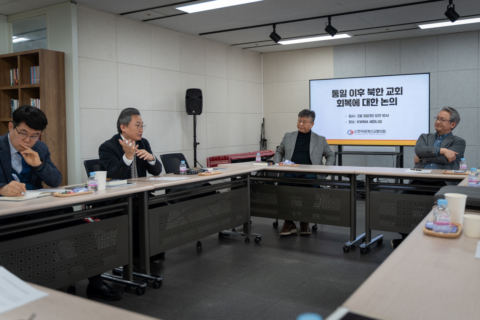 KWMA는 오늘 세미나실에서 북한 선교 전문가 7인을 초청하여 '통일 이후 북한 교회 회복을 위한 7원칙(안)'에 대한 심도 있는 논의를 진행했다. 이날 모임은 KWMA가 제안한 북한 교회 회복을 위한 7원칙을 두고 학계와 전문가들이 모여 자유롭게 의견을 개진하여, 향후 보다 구체적이고 실천적인 로드맵을 수립하기 위해 마련되었다. 이날 논의의 핵심이 된 7원칙은 선교적 관점에서 북한 교회를 회복의 주역으로 인정해야 한다는 내용을 골자로 한다. 한국 교회가 '외부인'이라는 인식 하에 주도적인 자세를 버리고, 돕고 섬기는 역할을 감당해야 한다고 명시하고 있다. 특히 한국 교회의 고질적인 병폐로 지적되는 개교단주의와 물량주의를 배격하고, 성경적인 교회 원형 회복에 방점을 두어야 한다는 점이 강조되었다. 참석자들은 "통일 이후 한국 교회가 개교단 확장 정책을 지양하고, 지상 교회 건립에 과도한 재정을 쏟기보다는 순수 복음 전파에 힘써야 한다"는 원칙과 신학적 차이나 방법론적 이견이 있더라도 북한 교회 회복 이슈는 모두가 함께 연합하고 논의해야하는 주제임에 공감대를 형성했다. 이날 모임은 단순한 의견 교환을 넘어 실질적인 결과물을 도출하기 위한 구체적인 일정 합의로 이어졌다. 참석한 7명의 전문가들은 이날 논의된 내용을 바탕으로 7원칙 중 각자 1~2개의 원칙을 맡아 전문적인 시각에서 수정 및 보완 작업을 거치기로 했다. 전문가들은 수정된 내용을 단순한 제안서가 아닌 논문 형태로 작성하여 7월 22일 오전 10시에 열리는 후속 모임에서 공식적으로 발표할 예정이다.